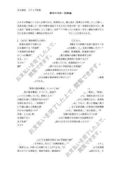 ★日大通信 メディア 教育の方法・技術論 理解度チェック1~4+最終レポート(S合格)