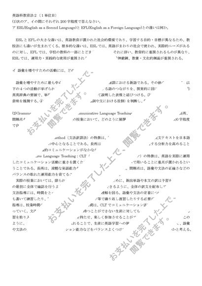 ☆明星大学 英語科教育法2 合格レポート 1単位目☆