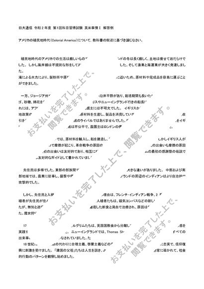 日大通信 令和2年度(2020年度) 第2回科目修得試験 英米事情Ⅰ 解答例 A評価