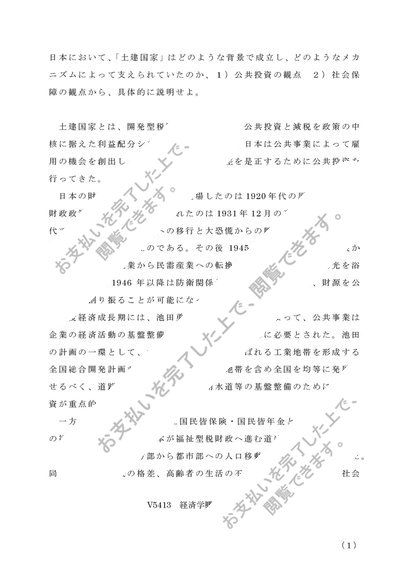 佛教大学 V5413 経済学概論 第1設題 リポート