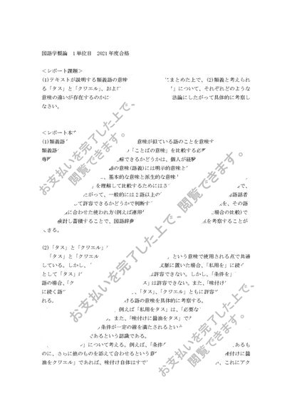 明星大学 通信 PD2010 国語学概論 1単位目2021年度合格