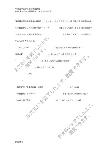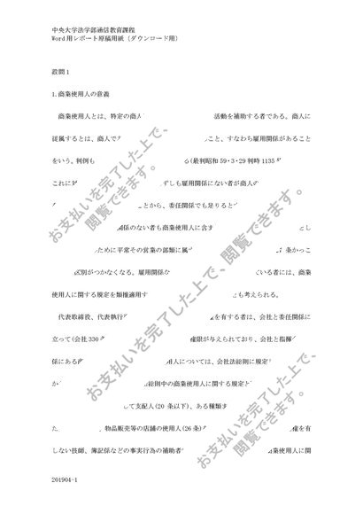 中央大学法学部通信教育課程 2020年 商法(総論・総則) 第2課題 C評価