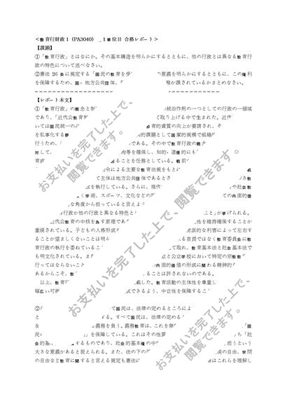 【明星通信】 教育行財政1(PA3040) _ 1単位目 合格レポート