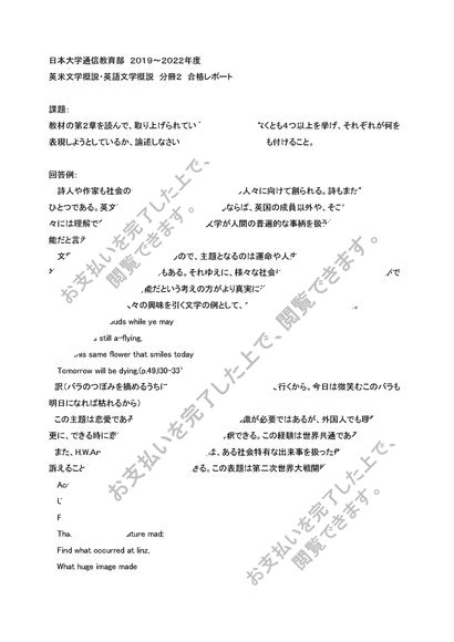 【日大通信】英米文学概説・英語文学概説 分冊2(2019~2022年)合格レポート