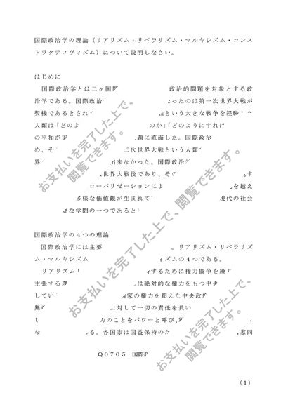 佛教大学 Q0705 国際政治学 第一設題【2017年度合格リポート】