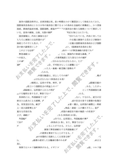 領海における無害通航権について、「無害」の意味に焦点をあて、関連する判例にも言及した上で論ぜよ。