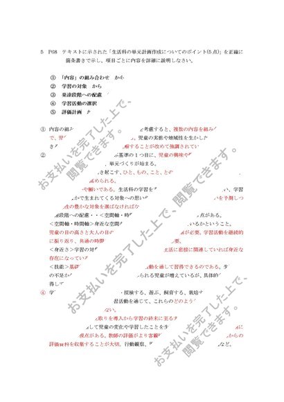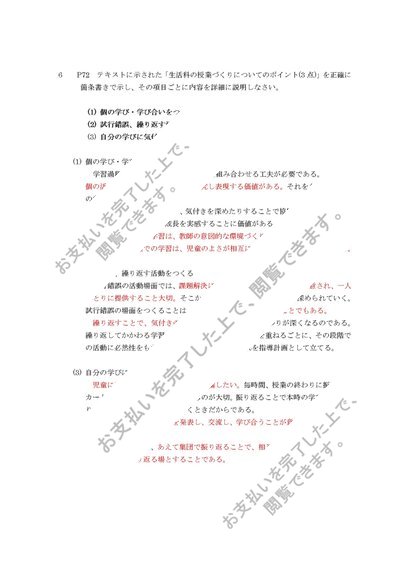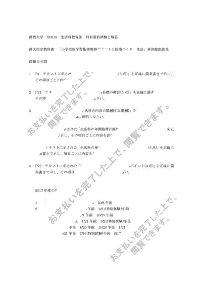 2019年度 佛教大学 S0619 生活科教育法 科目最終試験 6設題と6解答 94点合格済 出題履歴つき