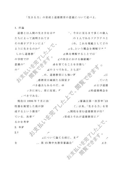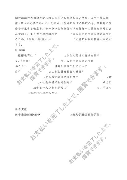 《佛教大学 小学校教諭》S0528 道徳教育の研究レポート 【2017年・A評価】
