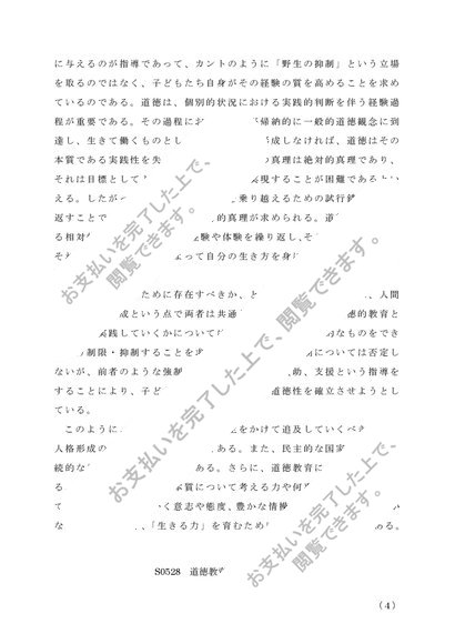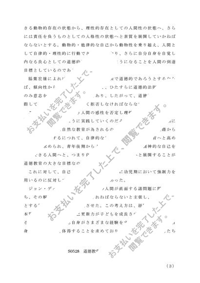 S0528 道徳教育の研究 レポート 2020年シラバス対応