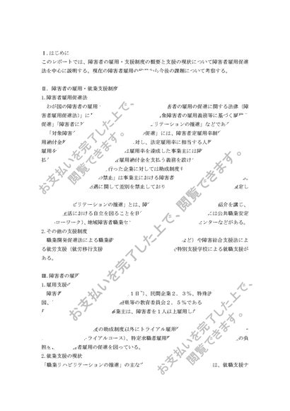 (レポート)障害者の雇用・就業支援の概要と現状に触れ、今後の課題について考察する