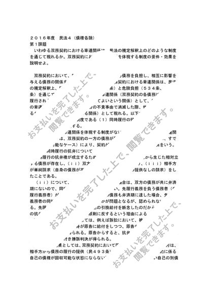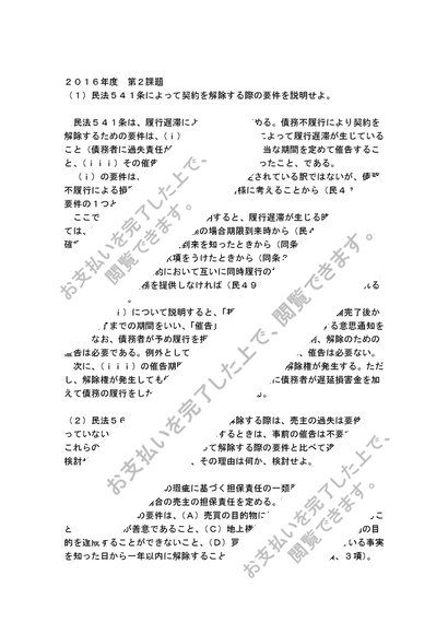 【中央 通信 2016年度】 民法4(債権各論) 第1,2課題 合格レポートセット