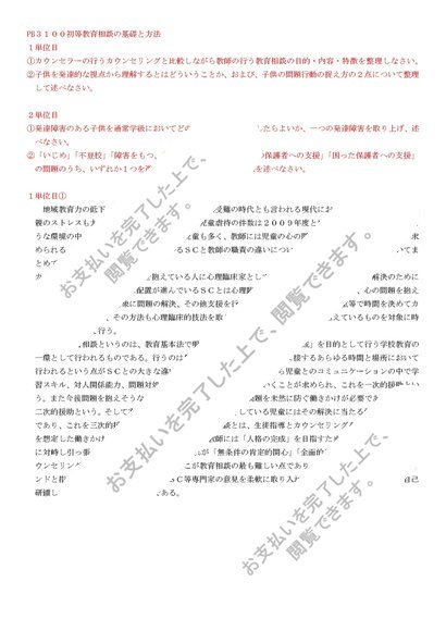 2016年 明星大学 通信 PB3100「初等教育相談の基礎と方法」 1・2単位目合格レポートセット