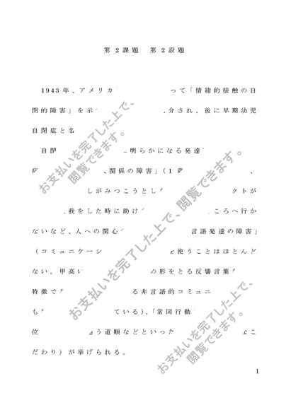 聖徳大学「障害児心理学」第二課題第二設題 合格 評価A 講評付き