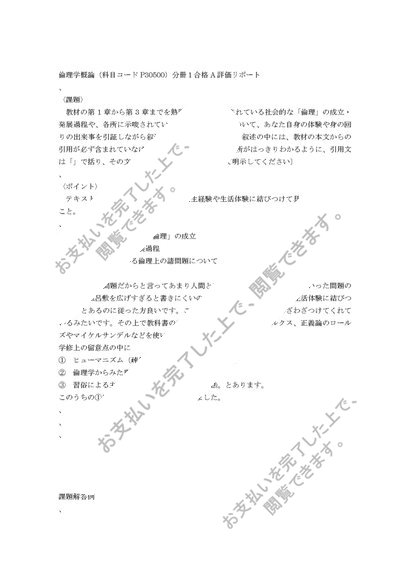日大通信倫理学概論 分冊1平成29・30年度課題A評価合格レポート