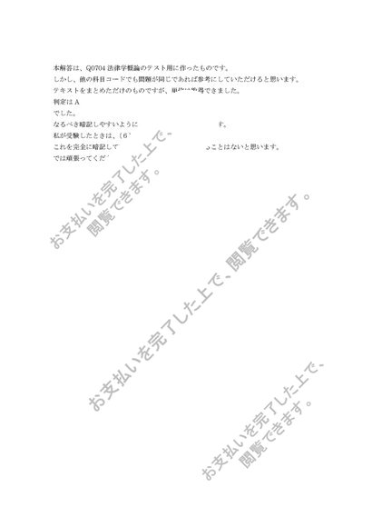 [2018年度対応版 合格済!!]佛教大学通信教育課程 Q0704 法律学概論テスト 80点合格