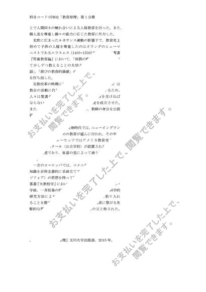 玉川大学 通信教育部「教育の原理」第1分冊 評価A