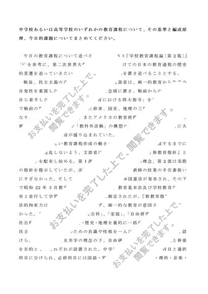 Z1114 学校教育課程論(中・高) 第一設題(2016年度) A判定