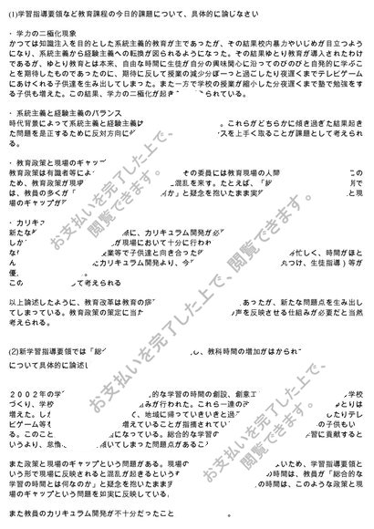 (2017年度合格)S0538学校教育課程論(中高) 科目最終試験対策