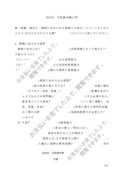 佛教大学 Z1101学校教育職入門第一設題 レポート