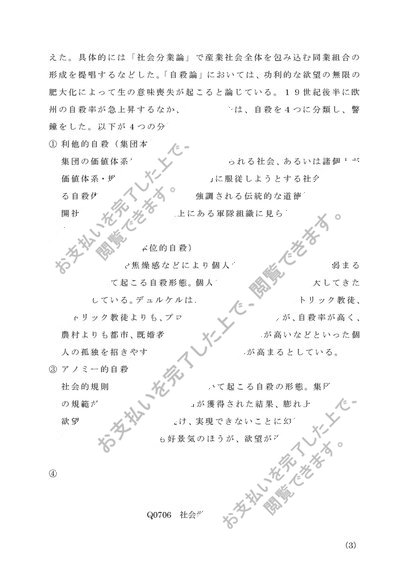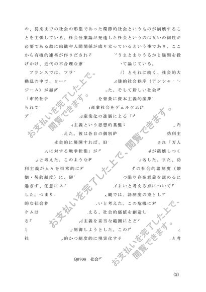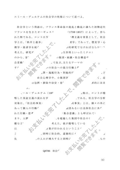Q0706社会学概論【第一設題】エミール・デュルケムの社会学の性格について述べよ【評価A】