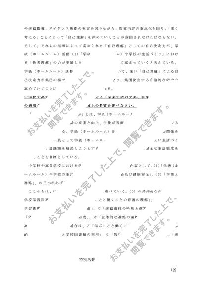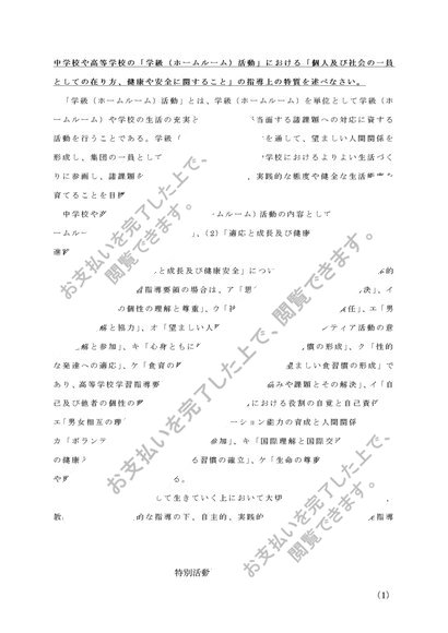 佛教大学 特別活動研究(中・高) 科目最終試験対策(6題) 2016
