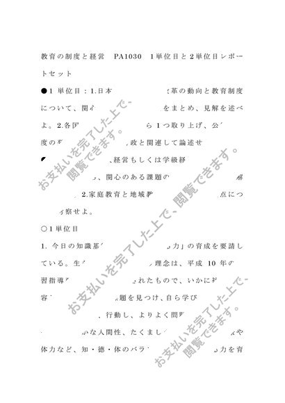 教育の制度と経営 PA1030 1単位目と2単位目レポートセット 合格済