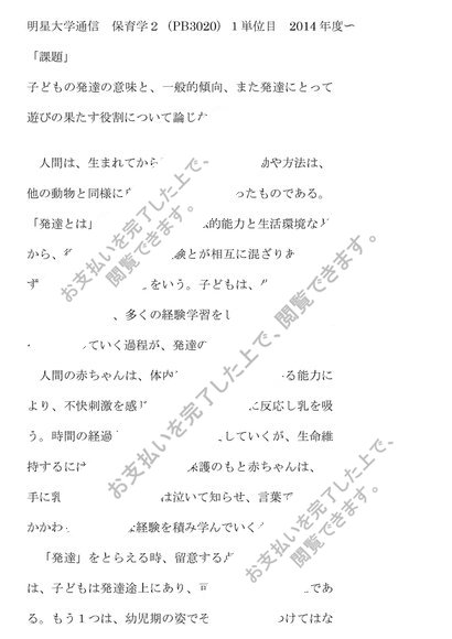 明星大学通信 保育学2(PB3020)1単位目 2014年度〜