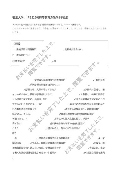 【2014年度】明星大学[PB2160]初等教育方法学1単位目