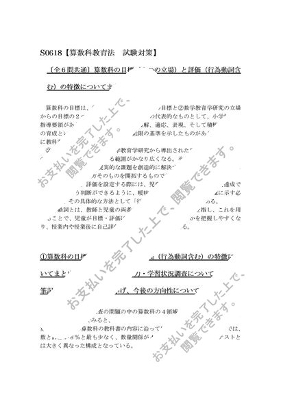 S0618 佛教大学 算数科教育法 試験6設題と解答 2014年度『合格済み80点』