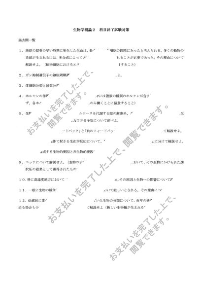 【明星大 過去問・解答例】生物学概論2【明星】