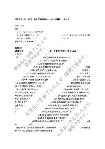 [2014][明星大学]初等算数科教育法 合格レポート 1単位目
