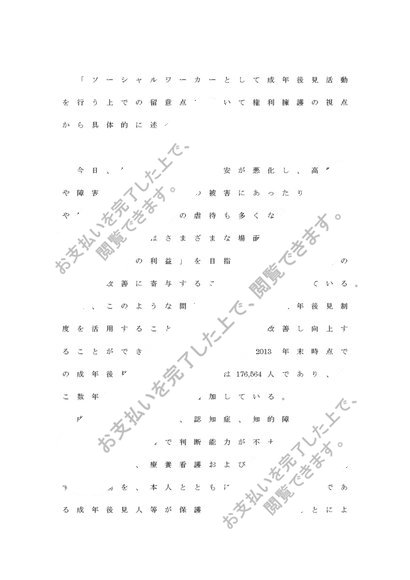 ソーシャルワーカーとして成年後見活動を行う上での留意点について権利擁護の視点から具体的に述べよ。 A評価