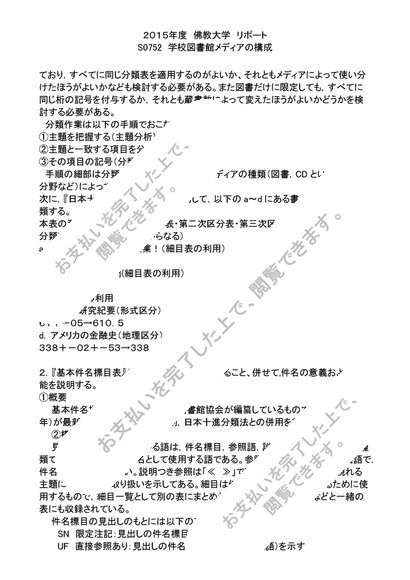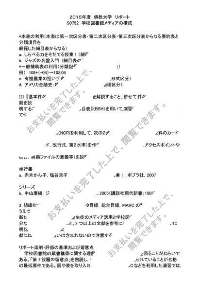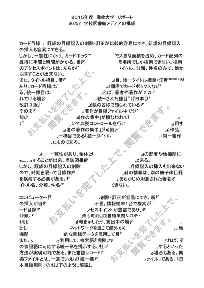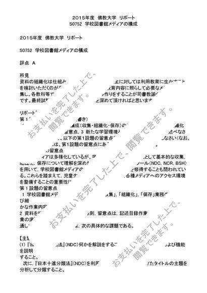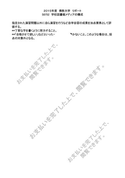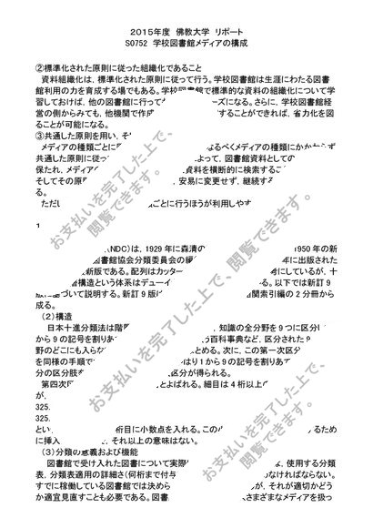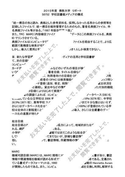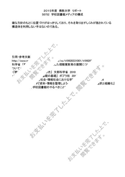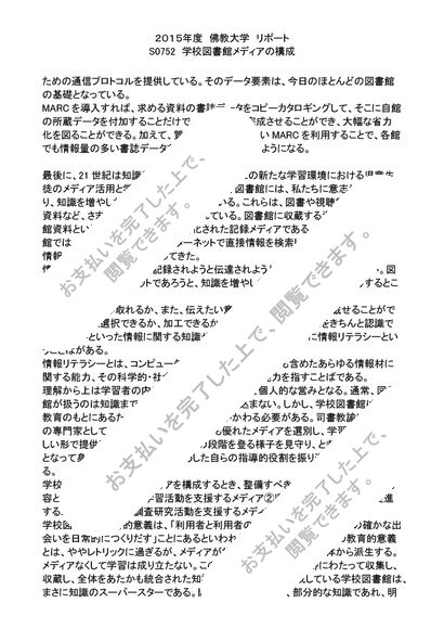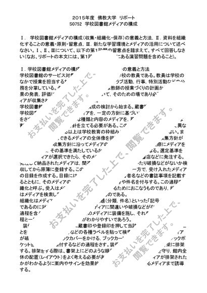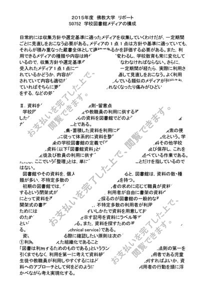 2015年度 リポート S0752 学校図書館メディアの構成 評点 A