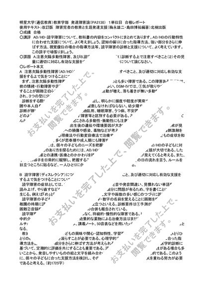 <2014~2016年課題>明星大学(通信教育)教育学部 発達障害論(PA2130) 2単位目 合格レポート