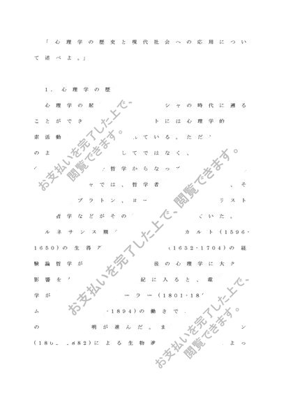心理学入門【レポート】A判定 「心理学の歴史と現代社会への応用について述べよ」