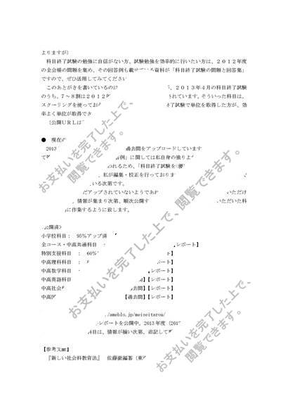 【2015】【明星大学】【社会・公民科教育法1】合格レポート(1.2単位目)