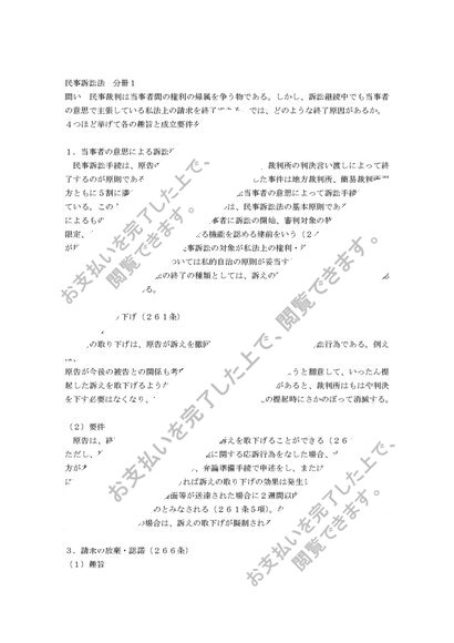 日大通信_民事訴訟法_分冊1(合格レポート)