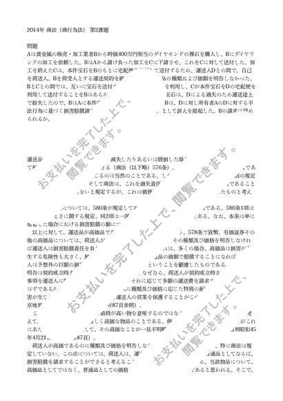 2014年中央大学通信レポート商法(商行為法) 第2課題