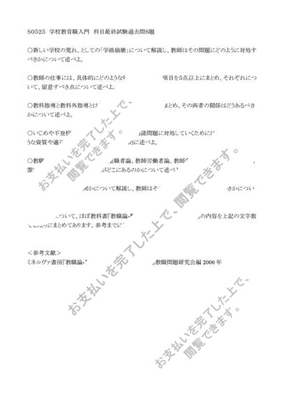 S0525 学校教育職入門 科目最終試験6題セット(合格済み)