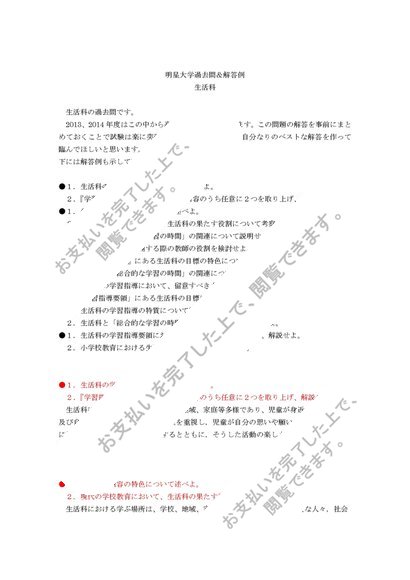 2016【明星過去問&解答例】生活科