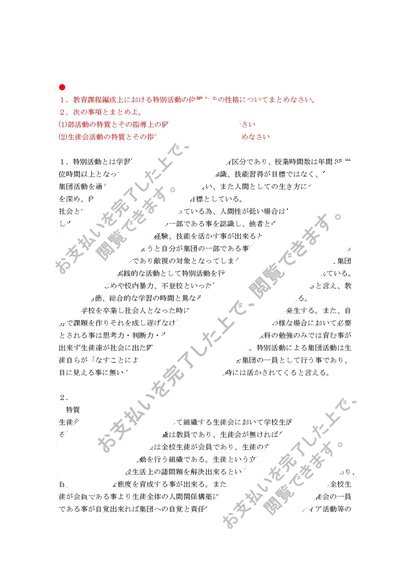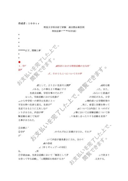 【2016明星過去問&解答例】【特別活動の指導法(中高)】