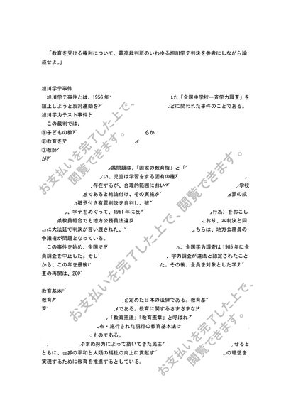 教育行財政(教育を受ける権利について、最高裁判所のいわゆる旭川学テ判決を参考にしながら論述せよ)