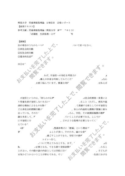 明星大学 児童進路指導論 2単位目 合格レポート 2013
