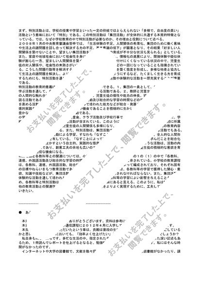 【2012】【明星大学】【特別活動の指導法(小学校)】合格レポート(1単位目)※2015年度も同一課題