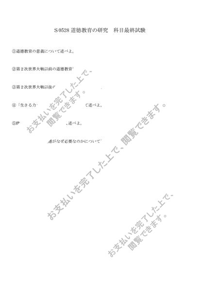 【2026年度対応】 S0528 道徳教育の研究 佛大科目最終試験対策 6設題&解答例 95点