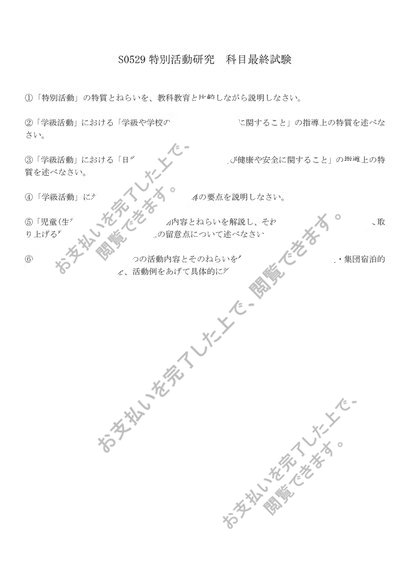 【2026年度対応】 S0529特別活動研究 佛大科目最終試験対策 6設題&解答例 93点