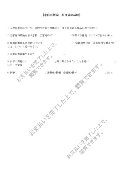 2026年度 家庭科概論【テスト】佛大 科目最終試験対策 6問 97点合格済み