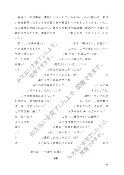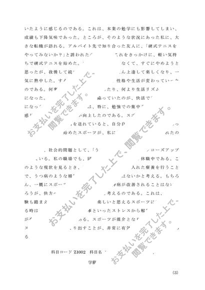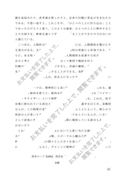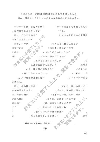 【スポーツ論入門(Z1002) レポートA評価◎】2019年度対応 自己のスポーツ(身体運動)を通して獲得したもの~
