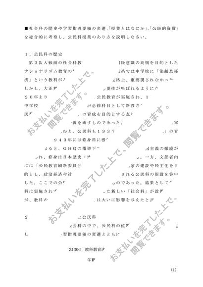 【佛教大学】教科教育法公民 第1設題[A評価] + 第2設題[B評価]