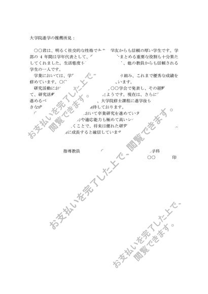 大学院推薦書_奨学金推薦書_文例